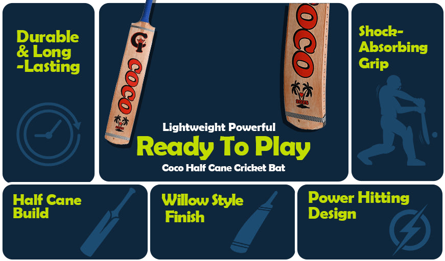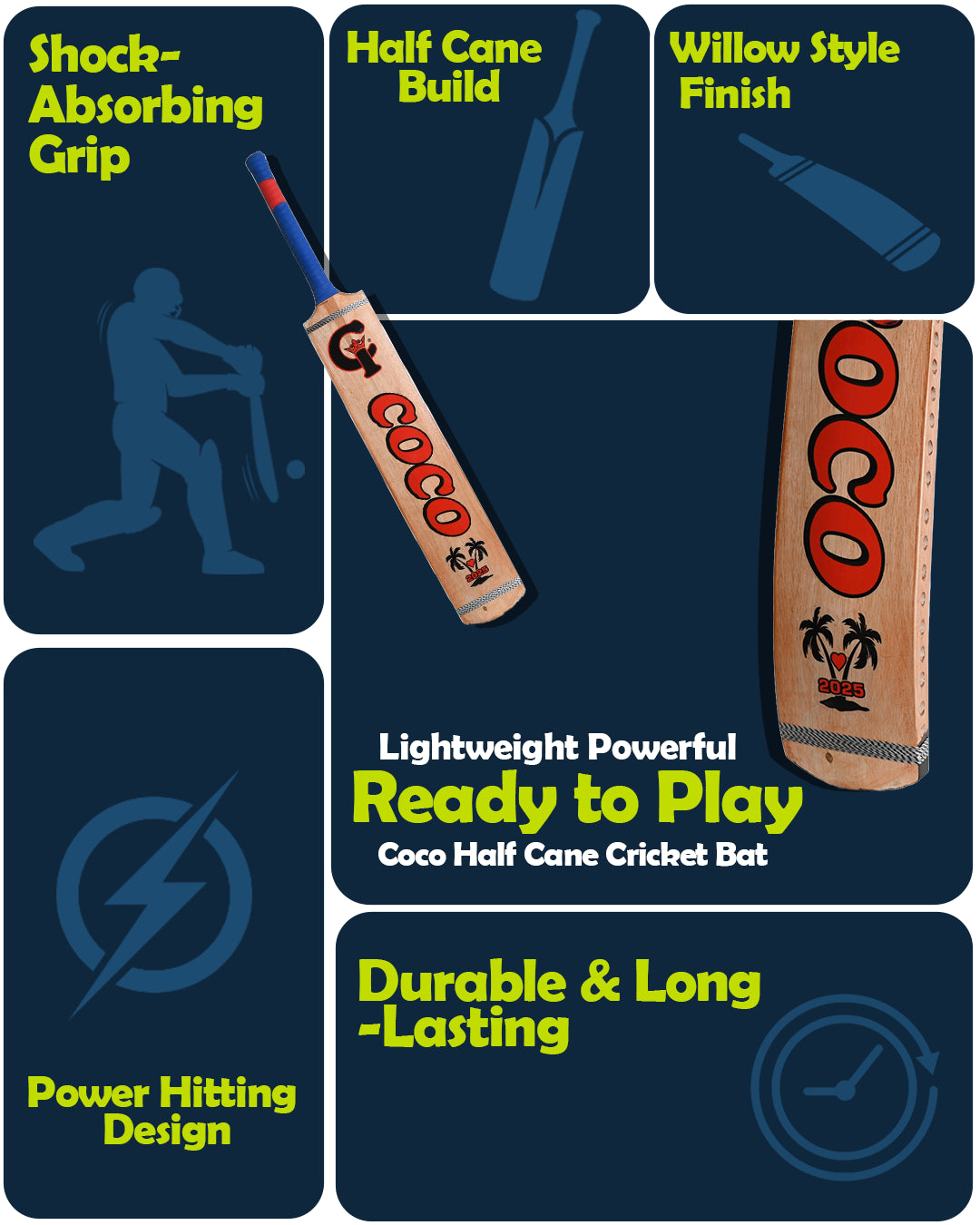 Durable half cane bat designed for tape ball cricket. Lightweight, powerful, and built for casual & professional matches.