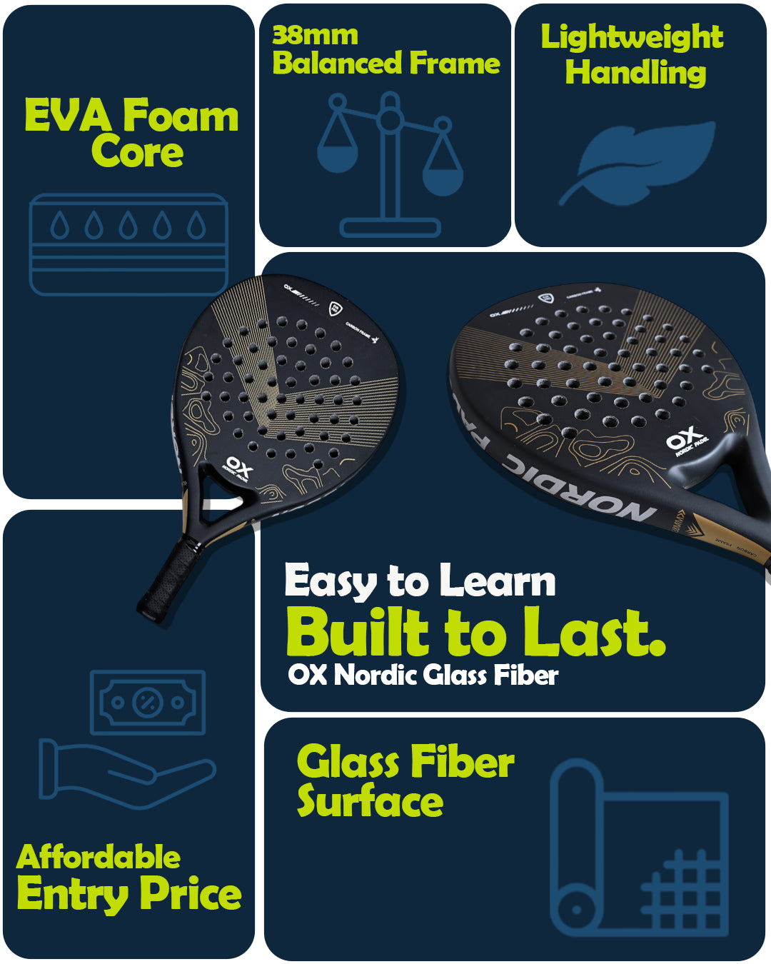 OX Nordic Glass Fiber Padel Racket – 38mm