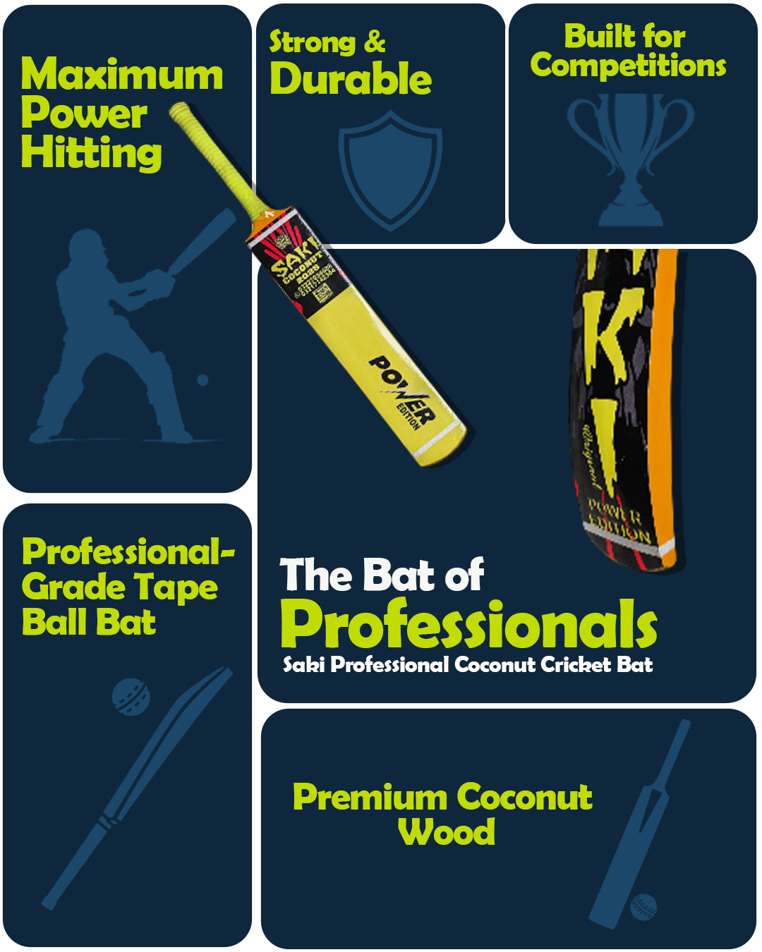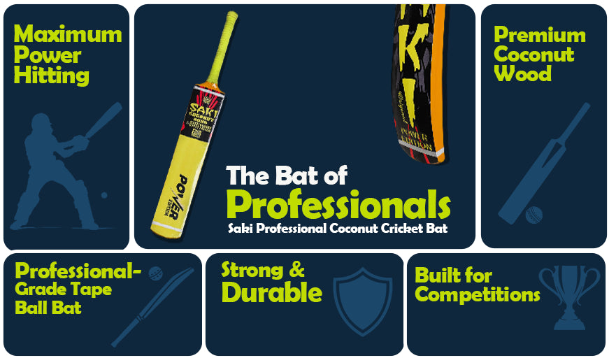 Top-class coconut wood bat built for professional tape ball cricket. Heavy-duty design for unmatched power hitting.